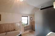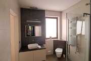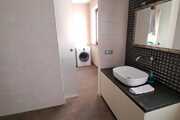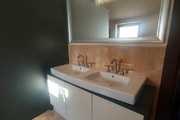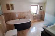 Na kolejnym poziomie duża przestronna sypialnia, a z niej wejście do dużej, wygodnej garderoby , piękna łazienka zarówno z kabiną prysznicową jak i z wanną. Na podłodze i na ścianach jasny marmur, w kabinie prysznicowej granit, armatura firmy Kludi .