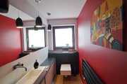 W łazienkach oraz w przedpokoju ogrzewanie podłogowe. W łazienkach dodatkowo grzejniki ręcznikowe z dodatkową funkcją włączenia grzania elektrycznego latem bez konieczności uruchamiania ogrzewania w całym domu.