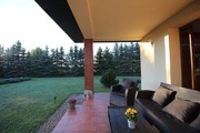 Parkiet dębowy w salonie, w pozostałych pomieszczeniach jesion, parapety wewnętrzne drewniane, zewnętrzne granitowe. Ogrzewanie gazowe (piec dwufunkcyjny), kominek, ogrzewanie podłogowe w łazience i toalecie, centralny odkurzacz, zmiękczacz wody. Ekologiczna oczyszczalnia .