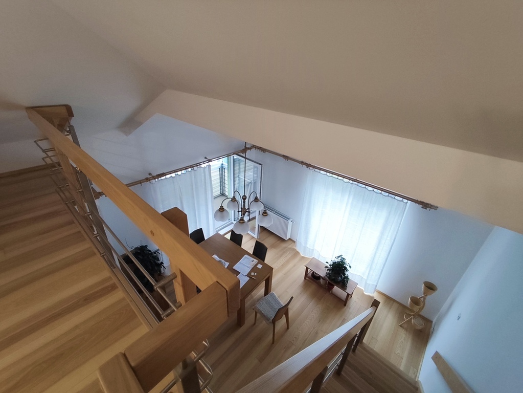 Salon /pow. 23,65m2/ z którego prowadzą schody na antresolę