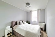 * sypialnia 1 z podwójnym łóżkiem i szafą w zabudowie