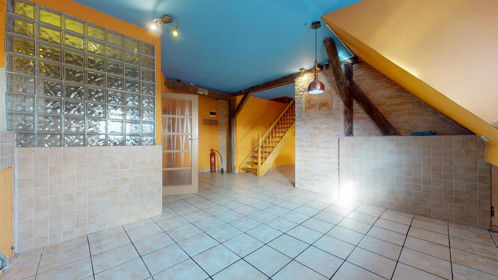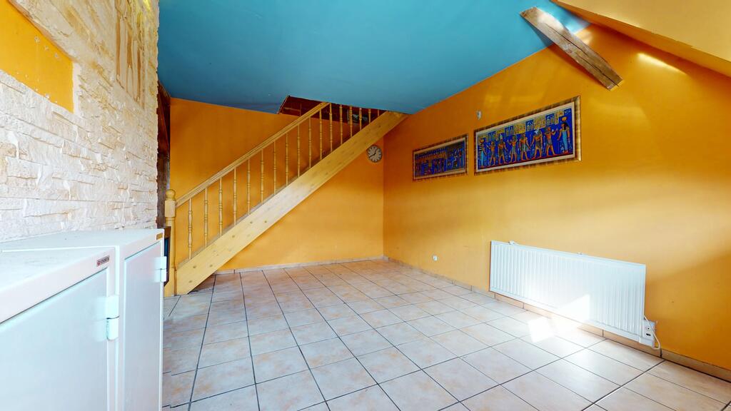 - pierwszy poziom, z przestronnym salonem, kwadratową, ustawną kuchnią (do wykończenia), łazienką z wc i przedpokojem