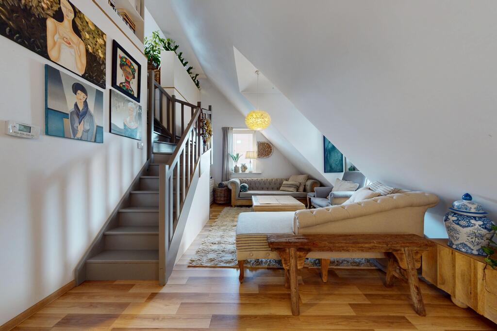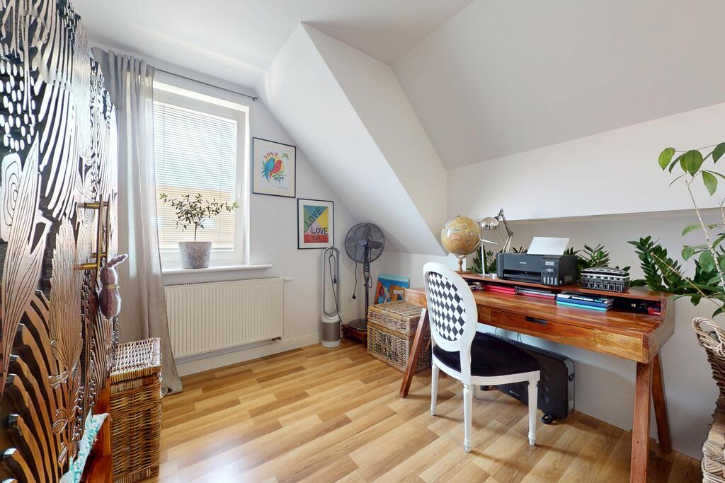 Na drugim poziomie otwarta przestrzeń, z której można stworzyć dodatkowe dwa pokoje o powierzchniach ok. 12,5 m2.