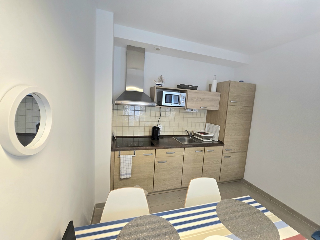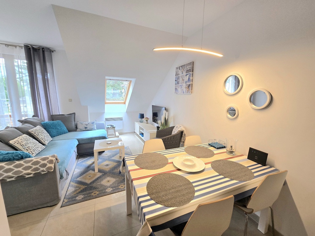 Oferujemy na sprzedaż apartament usytuowany na zamkniętym osiedlu w miejscowości Rewal. Na powierzchnię użytkową 34,7 m2 składają się: salon z aneksem kuchennym i wyjściem na przestronny balkon, sypialnia, łazienka oraz przedpokój. Powierzchnia całkowita wynosi 42m2 stwarzając tym samym poczucie większej przestrzeni. Mieszkanie łączy w sobie nowoczesny standard wykończenia i komfortowy układ pomieszczeń. W cenie pozostaje pełne umeblowanie i wyposażenie, widoczne na załączonych zdjęciach. Całość została urządzona z myślą o potrzebach osób wynajmujących, aby zapewnić wszystko co niezbędne podczas spędzania wakacji nad morzem.