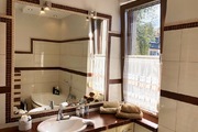 • Łazienka – jasna i funkcjonalna, wyposażona w wannę Ravak z funkcją prysznica, pralkę Bosch i armaturę HansGrohe. Dodatkowym atutem jest duże okno zapewniające naturalne światło.