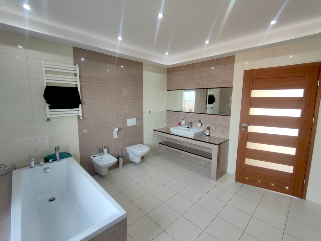 – przestronna łazienka (18,60) z duża zabudowana szafą,