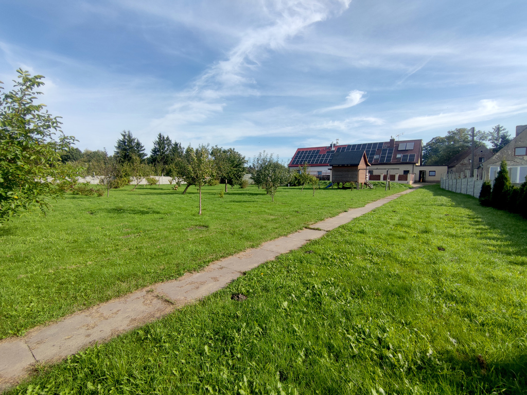 Dom stoi na działce o pow. 1.896 m2. Z przodu domu duży plac – możliwość wykorzystania na parking, dodatkowe garaże, magazyny lub inną zabudowę.