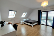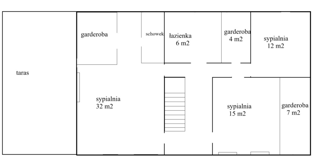 – sypialnia 1 (32,3) z garderobą i schowkiem oraz wyjściem na duży taras nad garażem,