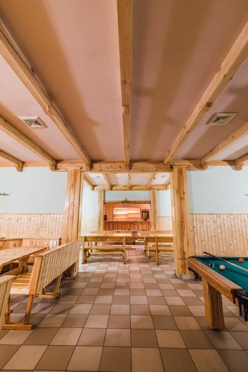 - duża jadalnia (ok. 290 m²) oraz wspólna kuchnia z kilkunastoma stanowiskami,