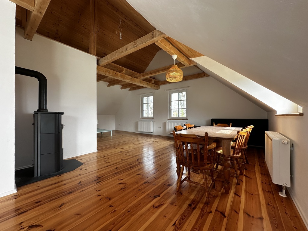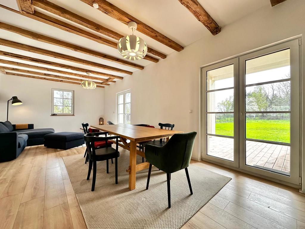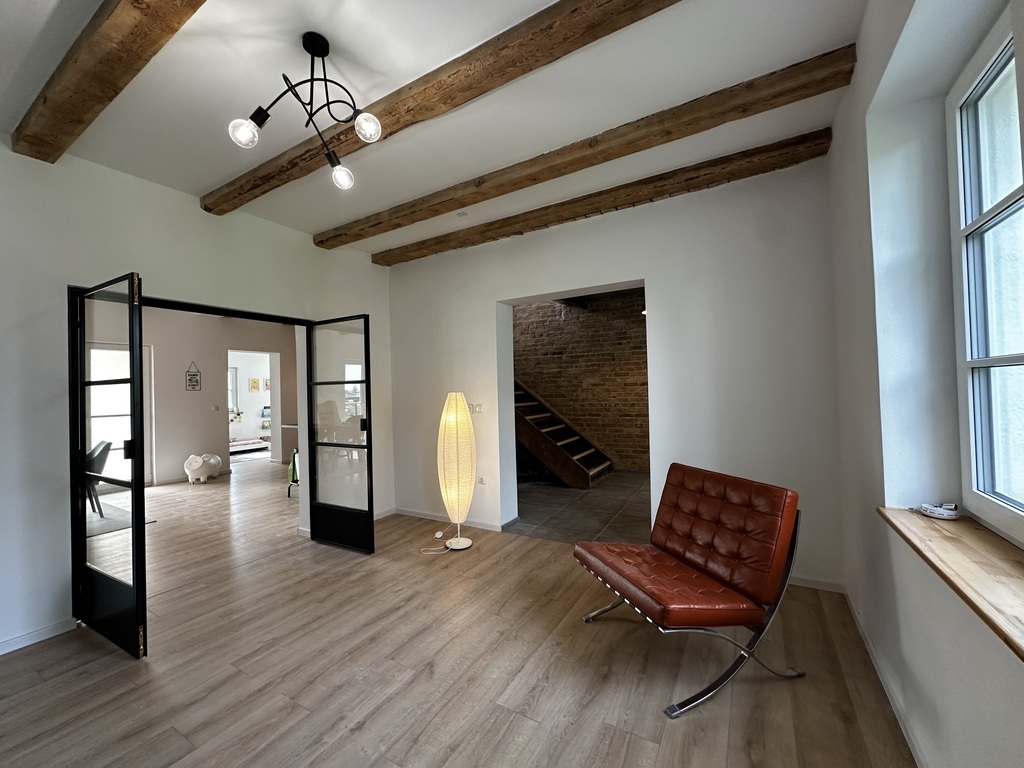 Dom przeszedł generalny remont. Zachowane zostały belki konstrukcyjne oraz drewno, które w połączeniu z nowoczesnym stylem nadają nieruchomości niesamowity klimat.
