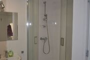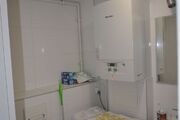 Łazienka z WC o powierzchni ok. 3 m² została wykończona glazurą i terakotą. Znajduje się w niej kabina prysznicowa, piec dwuobiegowy marki Junkers oraz umywalka.