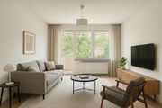 - Salon z balkonem od strony południowej – słoneczny i z widokiem na zieleń.