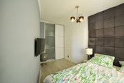 W pokojach na podłodze panele. Aneks kuchenny wyposażony w meble w zabudowie i sprzęt AGD – w cenie mieszkania. Sypialnia z szafą typu Komandor. Łazienka z kabiną natryskową, WC, umywalką, w glazurze. Ogrzewanie i ciepła woda z sieci miejskiej.