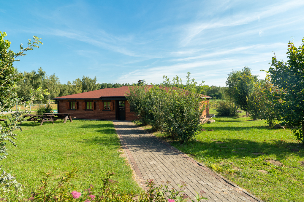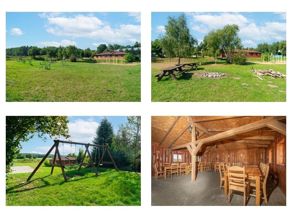 3. Chata biesiadna mogąca pomieścić kilkadziesiąt osób, a wokół niej miejsce na ognisko, stoły piknikowe, siłownia pod chmurką, boisko do koszykówki/siatkówki, huśtawki.