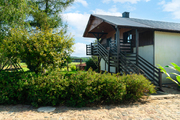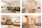 1. Budynek noclegowy z wyposażonymi w pełni pokojami 3- i 4-osobowymi z łazienkami (8 na parterze i 10 na piętrze).
