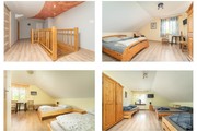 4. Dom mieszkalny dwupiętrowy z podpiwniczeniem oraz funcjonalnym układem pozwalającym na wynajem części pokojów. Na parterze znajduje się pokój dzienny wspólny, z którego możemy przejść do części mieszkalnej właściciela, która składa się z własnego salonu, sypialni, gabinetu, łazienki i kuchni, z dodatkowym prywatnym wejściem z drugiej strony budynku. Ze wspólnego pokoju dziennego prowadzą też schody na piętro, gdzie znajdziemy kolejne 4 pokoje z łazienkami.