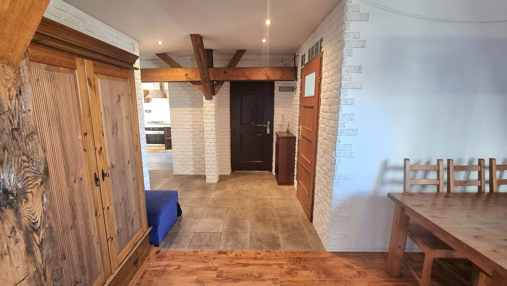 - Salon i Sypialnie: lokal składa się z trzech rozkładowych pokoi. Ozdobne, drewniane belki sufitowe nadają przestrzeni unikalny, ciepły charakter. Z jednej z sypialni rozpościera się piękny widok na Park Kasprowicza – idealny początek każdego dnia! Wyposażenie obejmuje zabudowy szaf i zestaw wypoczynkowy (możliwość pozostawienia umeblowania).