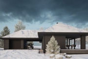 – Dojazd zaprojektowany wokół garażu (bez konieczności cofania) – układ do ewentualnej zmiany