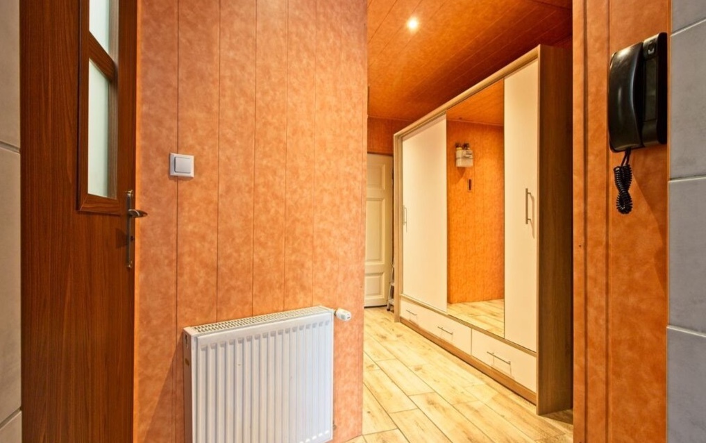 Korytarza- przestrzeń komunikacyjna z miejscem na szafę lub zabudowę.