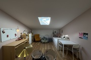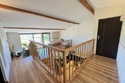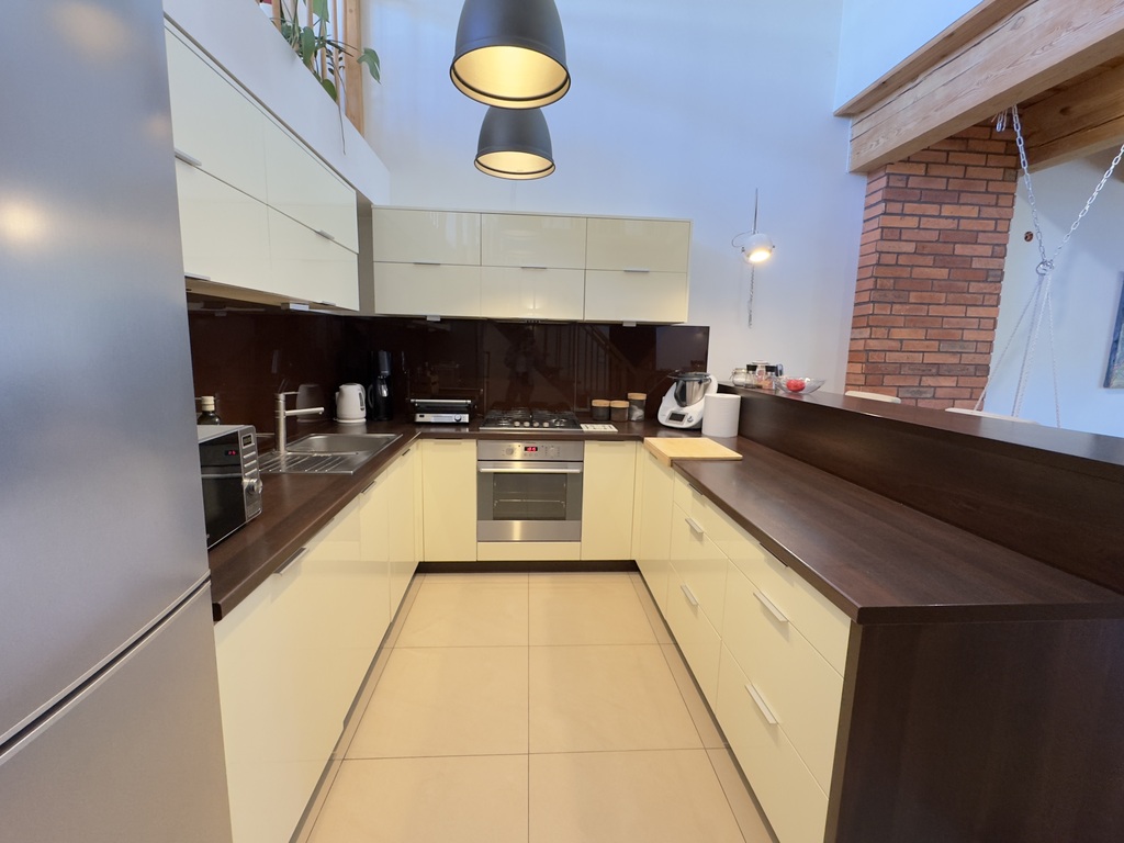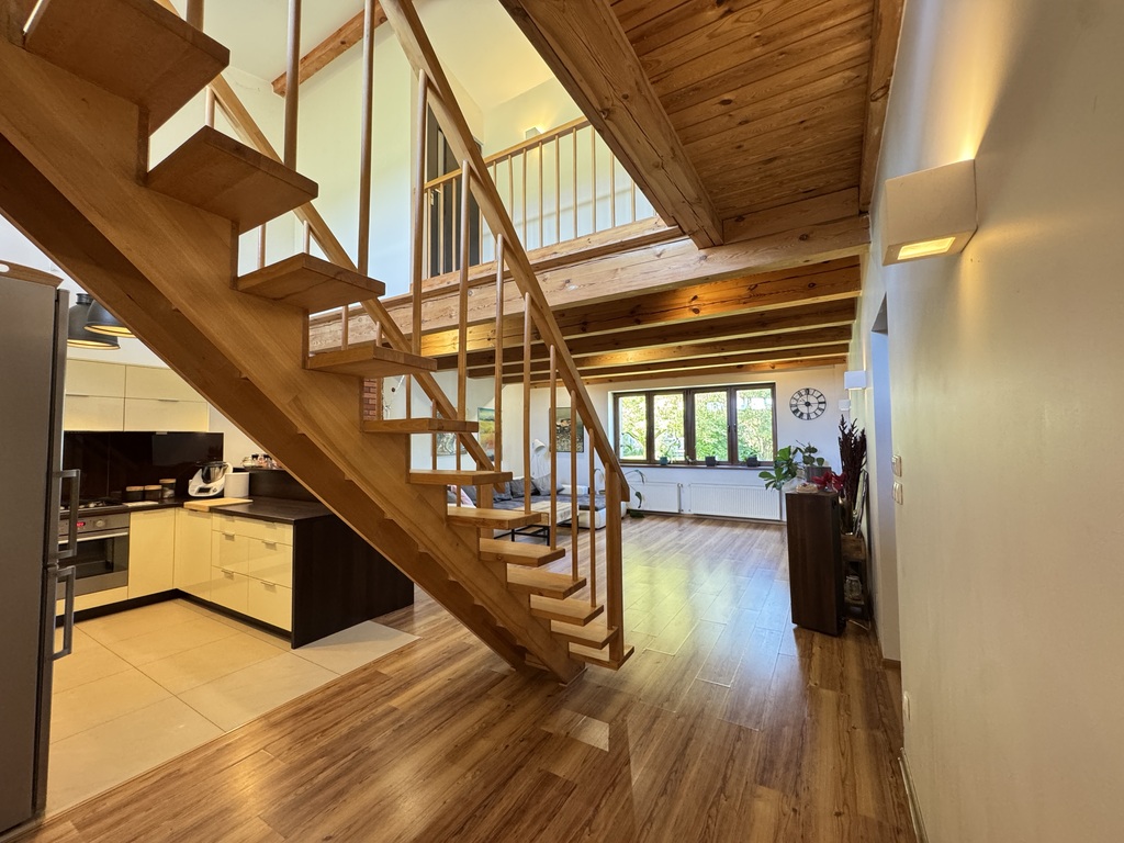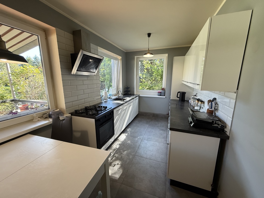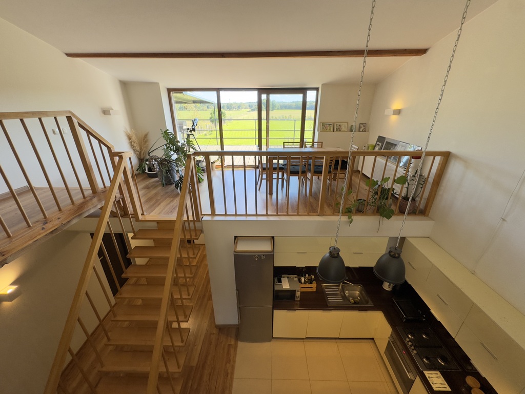 Na pierwszej kondygnacji znajduje się przestronny salon z otwartą kuchnią, pokój aktualnie wykorzystywany jako gabinet, duża i pojemna garderoba, łazienka z prysznice, umywalką i WC, kotłownia oraz wiatrołap. Drugą kondygnację stanowi antresola z wyjściem na taras z pięknym widokiem na otwartą przestrzeń (bez sąsiadów), 3 niezależne sypialnie oraz łazienka wyposażona w wannę, umywalkę i WC.