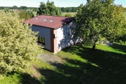 Drugi dom to adaptacja stodoły z 2013r. również budowany technologią tradycyjną z dwuspadowym dachem. Powierzchnia użytkowa budynku wynosi 193,57m2 + garaż 17,84m2.