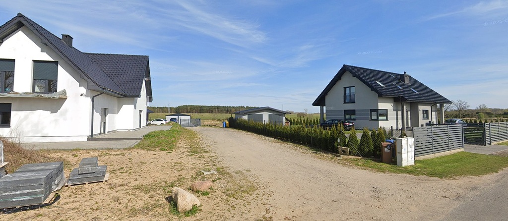 Działka ma ustawny, prostokątny kształt, zapewniający wygodne usytuowanie domu oraz ogród od strony południowej lub zachodniej.