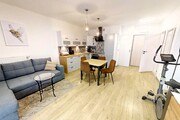 • salon z aneksem kuchennym i wyjściem na pięknie zagospodarowany, zielony ogródek o powierzchni 34m2,