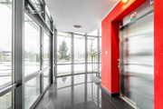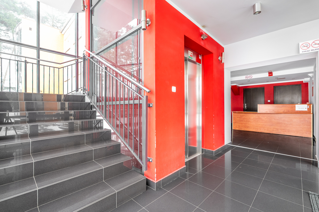 • Winda i dostępność: W ramach rozbudowy dobudowano nowoczesne, przeszklone klatki schodowe. Jedna z nich została wyposażona w cichobieżną windę osobową, co czyni obiekt w pełni dostępnym dla osób niepełnosprawnych, seniorów oraz pacjentów wymagających opieki.