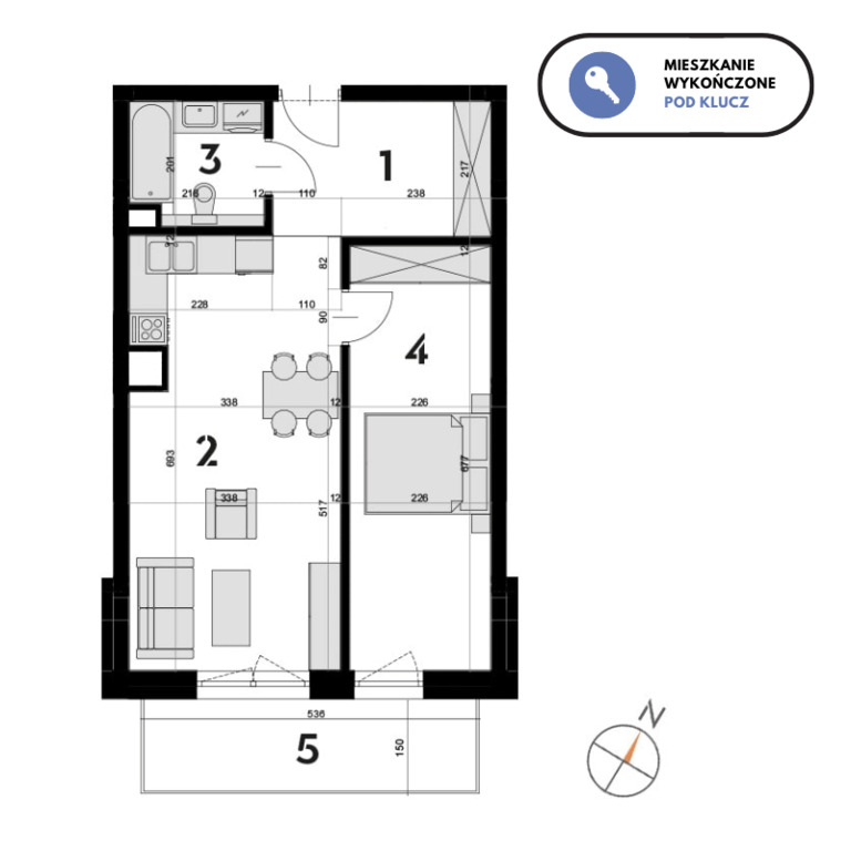 Mieszkanie zostało wykończone pod klucz, czyli wyposażone jest m.in. w :
