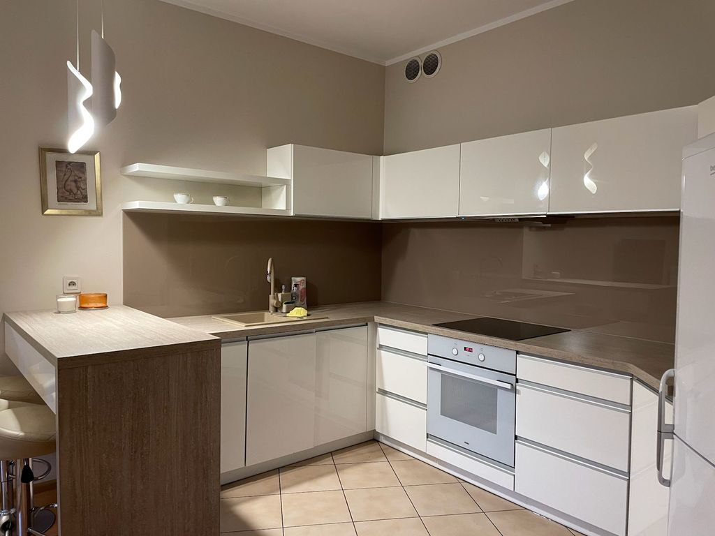 Mieszkanie jest w idealnym stanie i zostało wykończone materiałami wysokiej jakości. Posiada otwartą kuchnię, która została wyremontowana 5 lat temu – szafki pokryte lacobelem, sprzęty markowych firm.