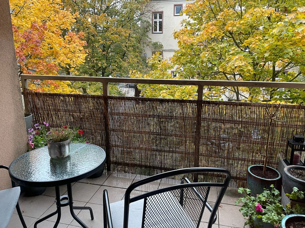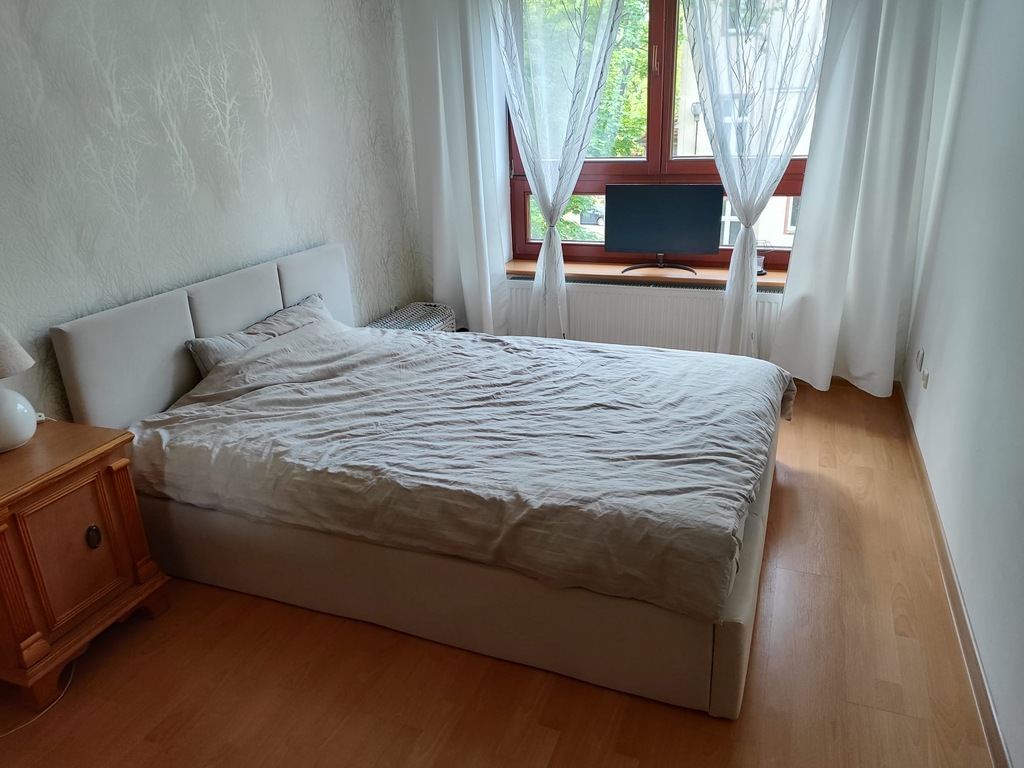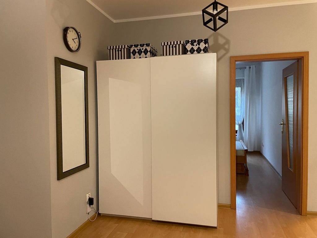 W sypialni znajduje się szafa i zewnętrzna roleta okienna. Do mieszkania przynależy balkon o powierzchni około 4 m² zwrócony na południowo-zachodnią stronę świata.