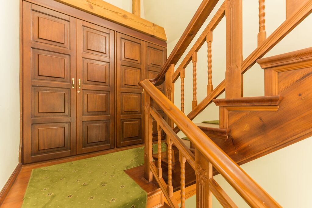 – Przestronny przedpokój z zabudowanymi szafami dopasowanymi stylistycznie do wnętrza.