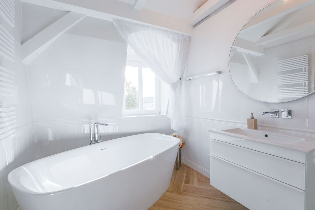 – Główna sypialnia z garderobą oraz prywatną łazienką z wanną i prysznicem Villeroy & Boch,