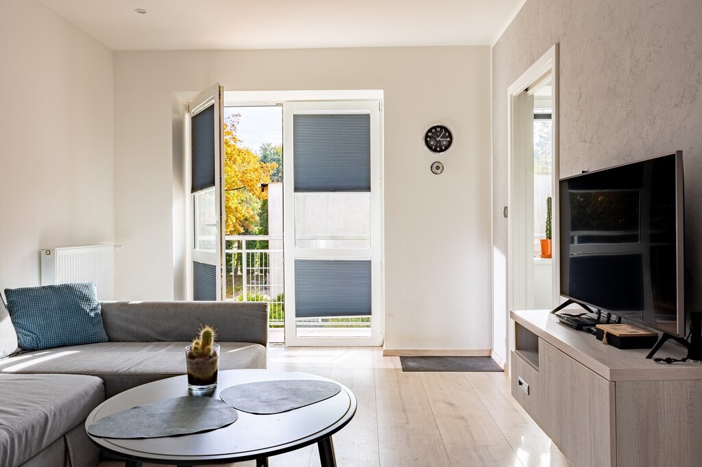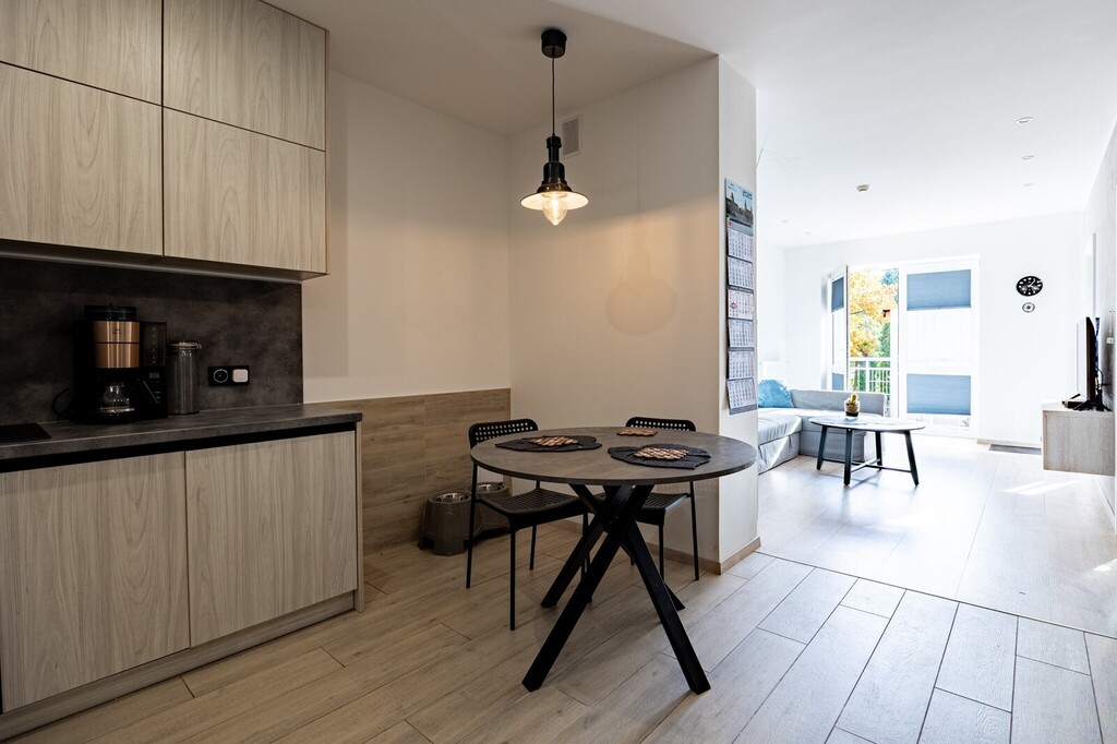 Szukasz miejsca, gdzie odpoczniesz od zgiełku miasta? Ten apartament w Kołobrzegu oferuje ciszę i kontakt z naturą – tuż za budynkiem zaczyna się las, którym w kilka minut dojdziesz na plażę. Idealne miejsce na wakacyjny wypoczynek lub wynajem dla osób ceniących spokój.