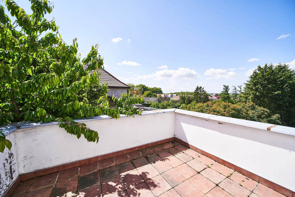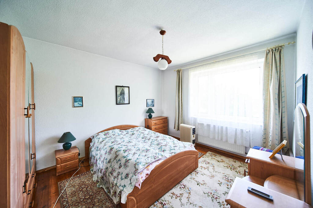 Na I piętrze znajduje się słoneczny salon z wyjściem na taras z pięknym widokiem, 2 duże sypialnie, kuchnia ze spiżarką, łazienka z oknem oraz przedpokój.