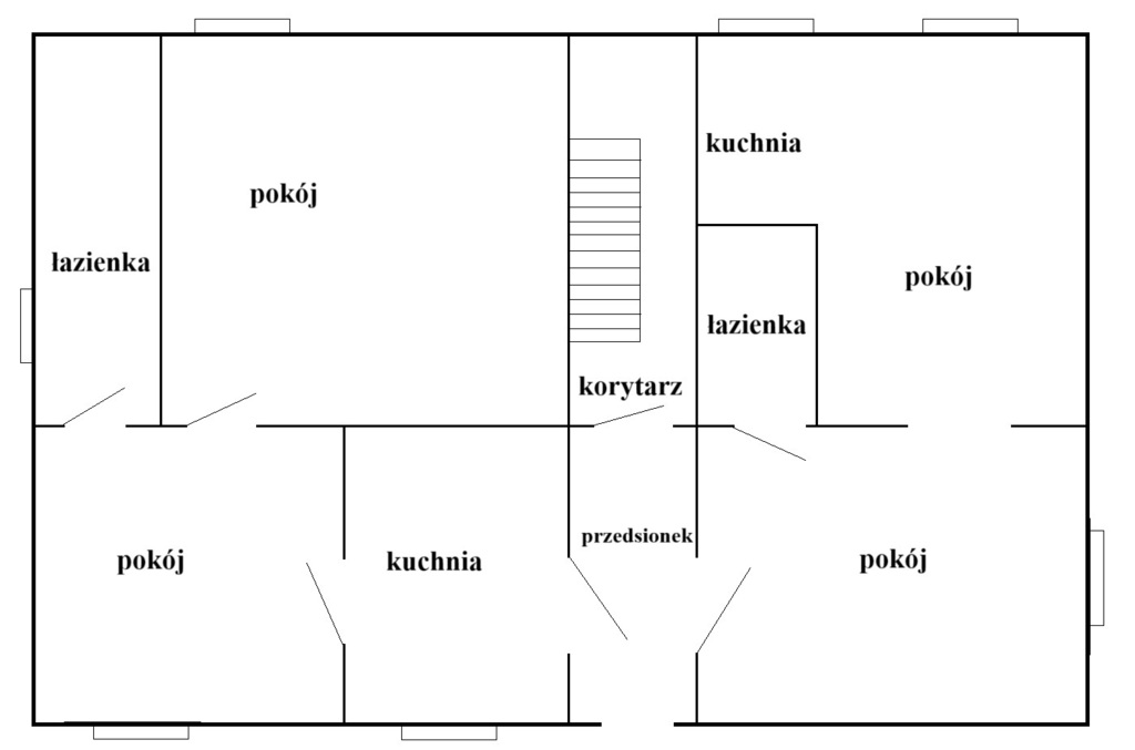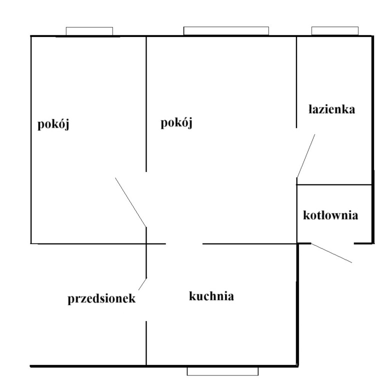 Każde z mieszkań ma po około 60 m i składa się z : dwóch pokoi, kuchni i łazienki z toaletą.