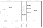 Obecnie w domu na parterze zrobione są dwa niezależna mieszkania 2 pokojowe, a w przybudówce mamy kolejne 2-pokojowe mieszkanie.