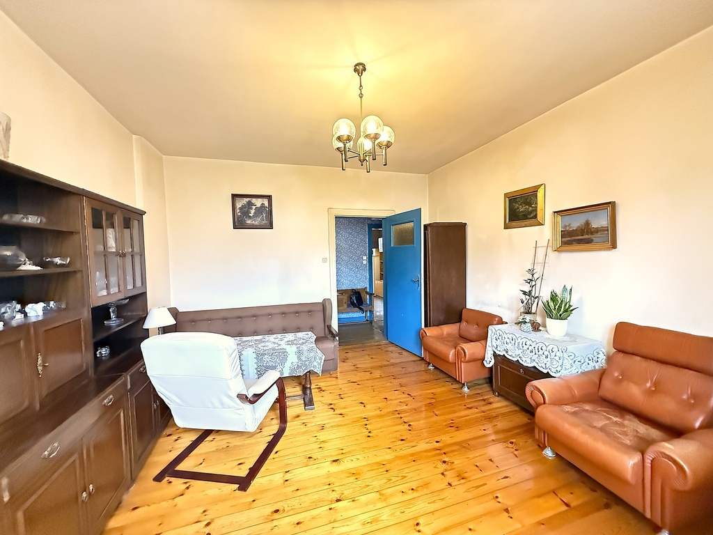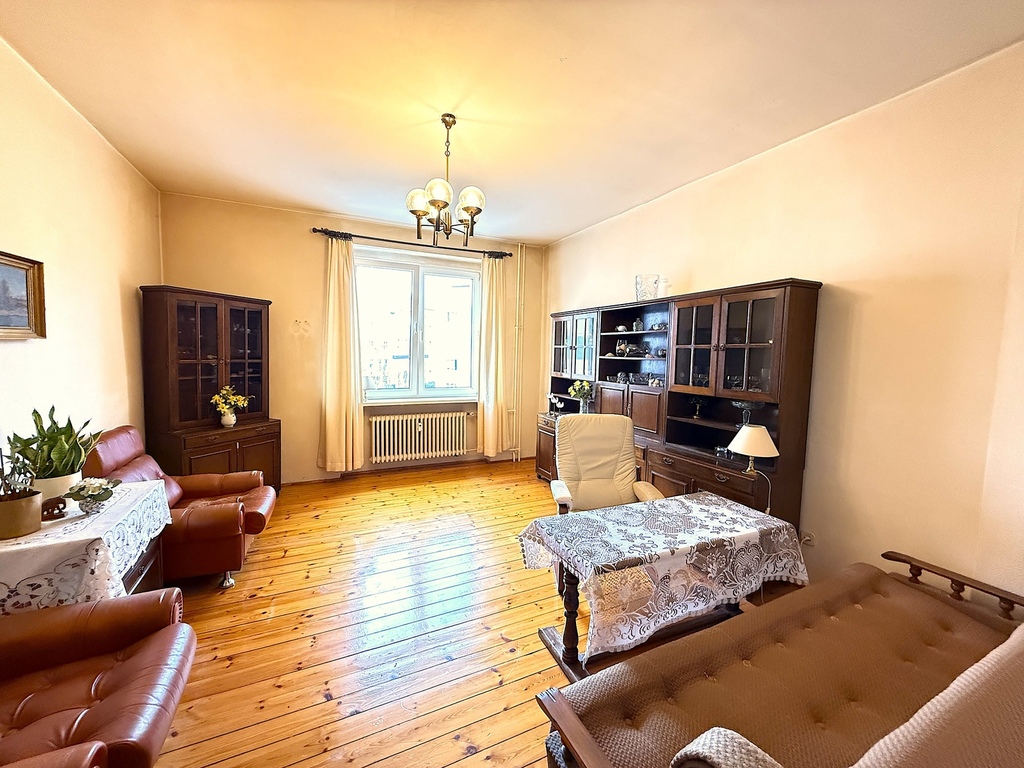 – salon od strony południowo-zachodniej, jasny, z drewnianymi podłogami,