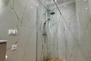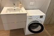 Stylowa łazienka –eleganckie kafle o dużym formacie, duży i wygodny prysznic z deszczownicą,zainstalowana pralka.