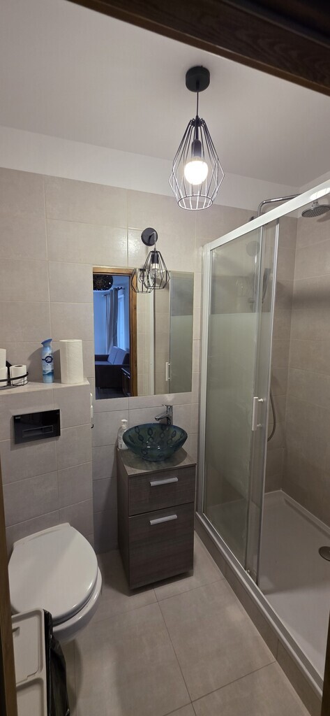 drugiej sypialni o pow. około 11 m2 i przylegającej drugiej łazienki z kabiną prysznicową o pow.3 m2.