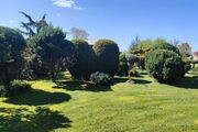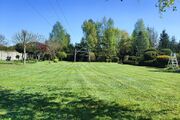 Działka pięknie zagospodarowana (drzewa liściaste i iglaste, krzewy owocowe, borówka amerykańska), ogrodzona żywopłotem z bramą wjazdową i furtką.