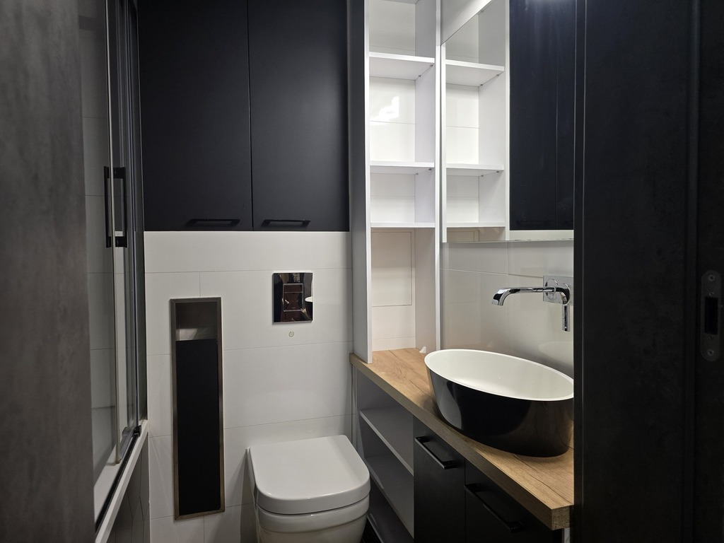 - Łazienka z meblami w zabudowie, wykończona w wysokim standardzie