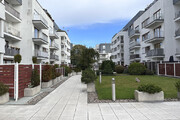 Nowoczesne, ogrodzone osiedle z kontrolowanym dostępem. Zadbane części wspólne – liczne drzewka, alejki i ławeczki, tworzące przyjemną przestrzeń do wypoczynku.
