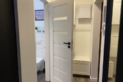 Lokal składa się z dwóch pokoi, przestronnej antresoli, w pełni wyposażonej kuchni, łazienki oraz przejściowej garderoby. Mieszkanie wykończone w wysokim standardzie, z dbałością o detale i funkcjonalność – znajdziemy tu liczne schowki oraz pojemne, głębokie szafy.