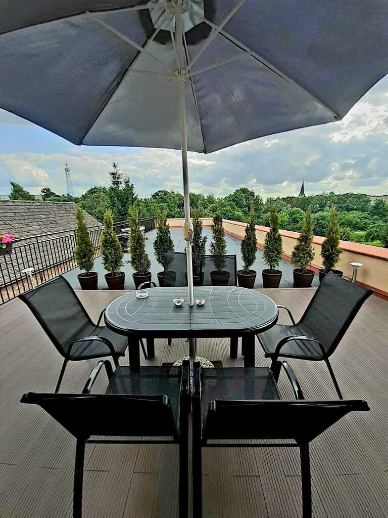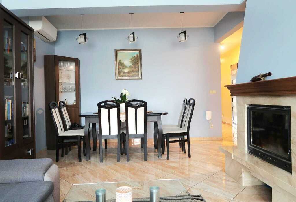 Nieruchomość doinwestowana, wysoki standard wykończenia. Ogrzewanie domu – gazowe (nowoczesnym piecem dwufunkcyjnym) oraz kominkowe. Na całej powierzchni mieszkalnej oraz na klatce schodowej zainstalowano ogrzewanie podłogowe (oprócz wiatrołapu). Ponadto klimatyzacja w salonie oraz głównej sypialni. Funkcjonalny układ pomieszczeń. Dom wykańczany materiałami wyłącznie wysokiej jakości. W cenie pozostają zabudowy stałe wraz ze sprzętami RTV/AGD i większością umeblowania (do indywidualnego ustalenia). Drzwi drewniane, antywłamaniowe, okna PCV – 3. szybowe. Wszystkie media miejskie. Jednym z największych atutów – bardzo duży (ponad 100 m²), pięknie urządzony taras. Dodatkowo – poddasze do indywidualnego zaaranżowania. Ogród z wieloma nasadzeniami, z garażem oraz 2. zbiornikami retencyjnymi na wodę deszczową z pompą zatapialną (na 5000 litrów), miejsce na ognisko, ławki i stół. Posesja bardzo zadbana i starannie zaaranżowana, m.in. ułożone chodniki i podjazdy utwardzone polbrukiem. Nieruchomość odseparowana metalowym ogrodzeniem z bramą otwieraną na pilota.