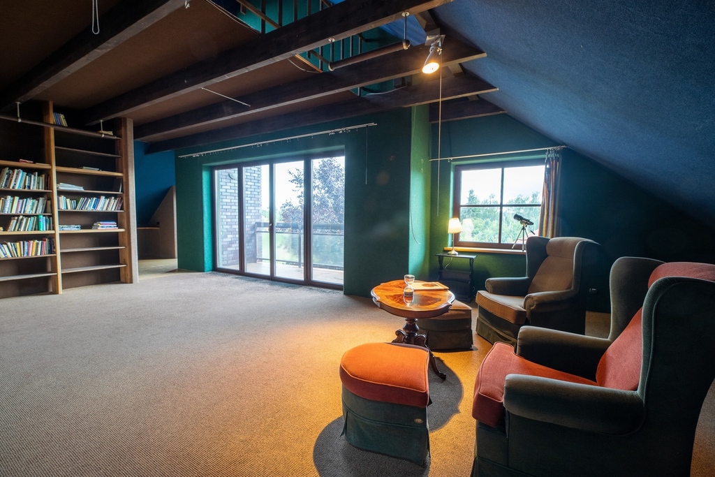 – wyodrębnione mieszkanie doświetlone oknami tarasowymi i połaciowymi z kuchnią (16,5m2), salon z tarasem (36,3m2), dwie sypialnie oraz łazienka (całe to mieszkanie ma powierzchnię 120m2)