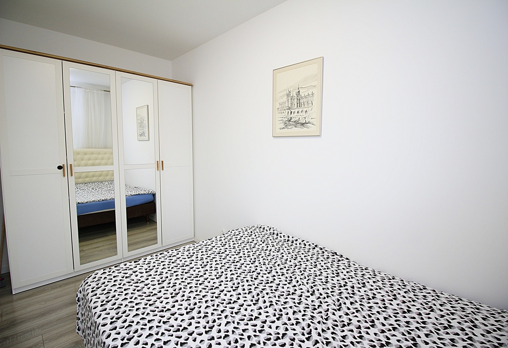 * sypialnia z szafą i łóżkiem