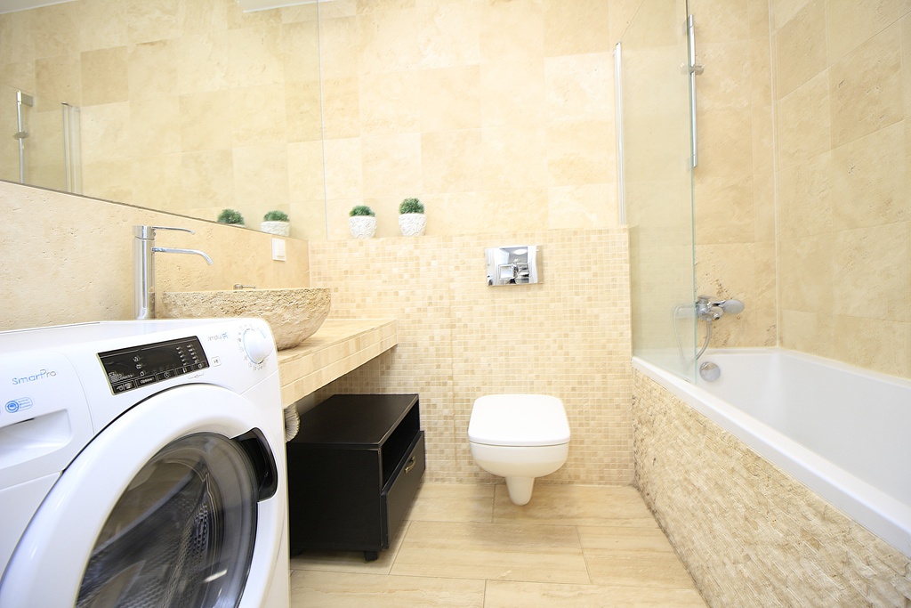 * łazienka z WC i wanną.