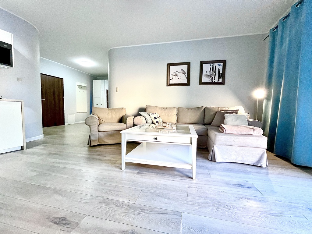 Apartament działa w modelu wynajmu krótkoterminowego – posiada własną stronę rezerwacyjną oraz jest dostępny na Booking.com ze stałą bazą klientów.