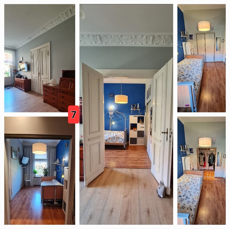 Pięciopokojowe mieszkanie znajduje się na 2 piętrze pięknie odnowionej i wyremontowanej kamienicy.